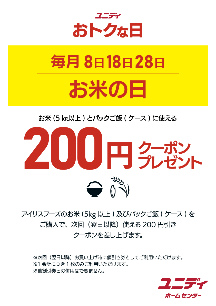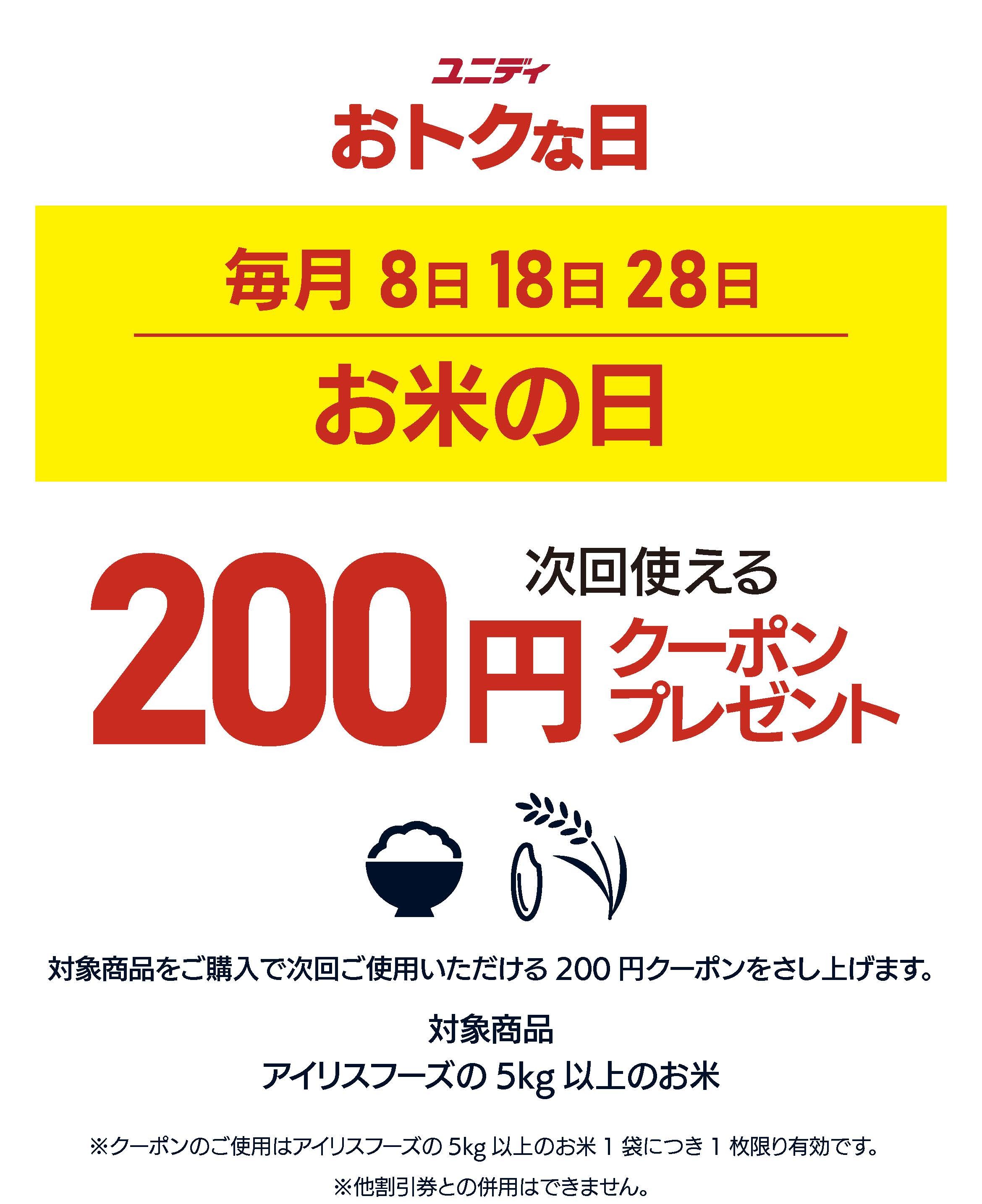 毎月8・18・28日は『お米の日』‼次回使える200円クーポンプレゼント✨