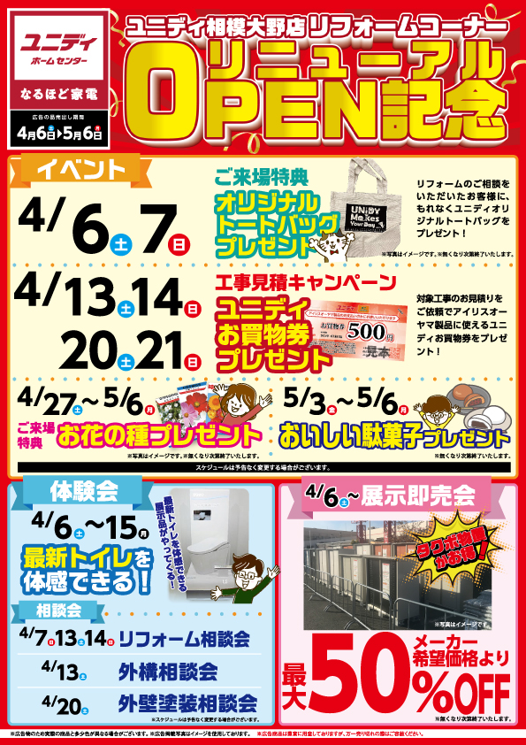 ユニディ相模大野リフォームコーナーリニューアルOPEN記念✨