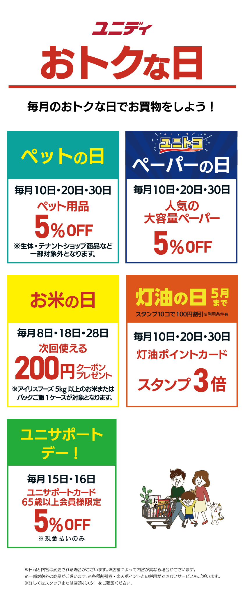 ユニディのおトクな日✨「毎月のおトクな日」でお買物しよう!