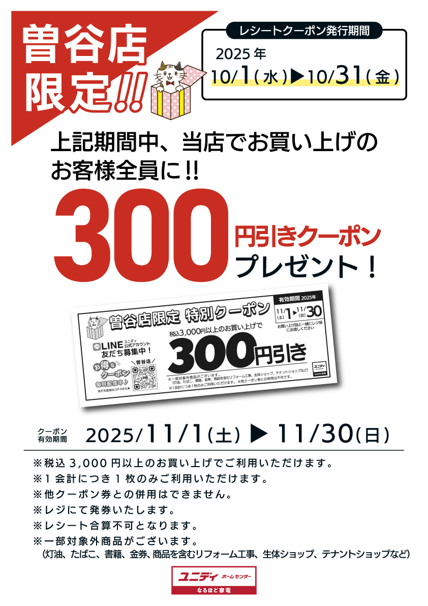 曽谷店限定‼期間中お買い上げのお客様全員にクーポンプレゼント✨