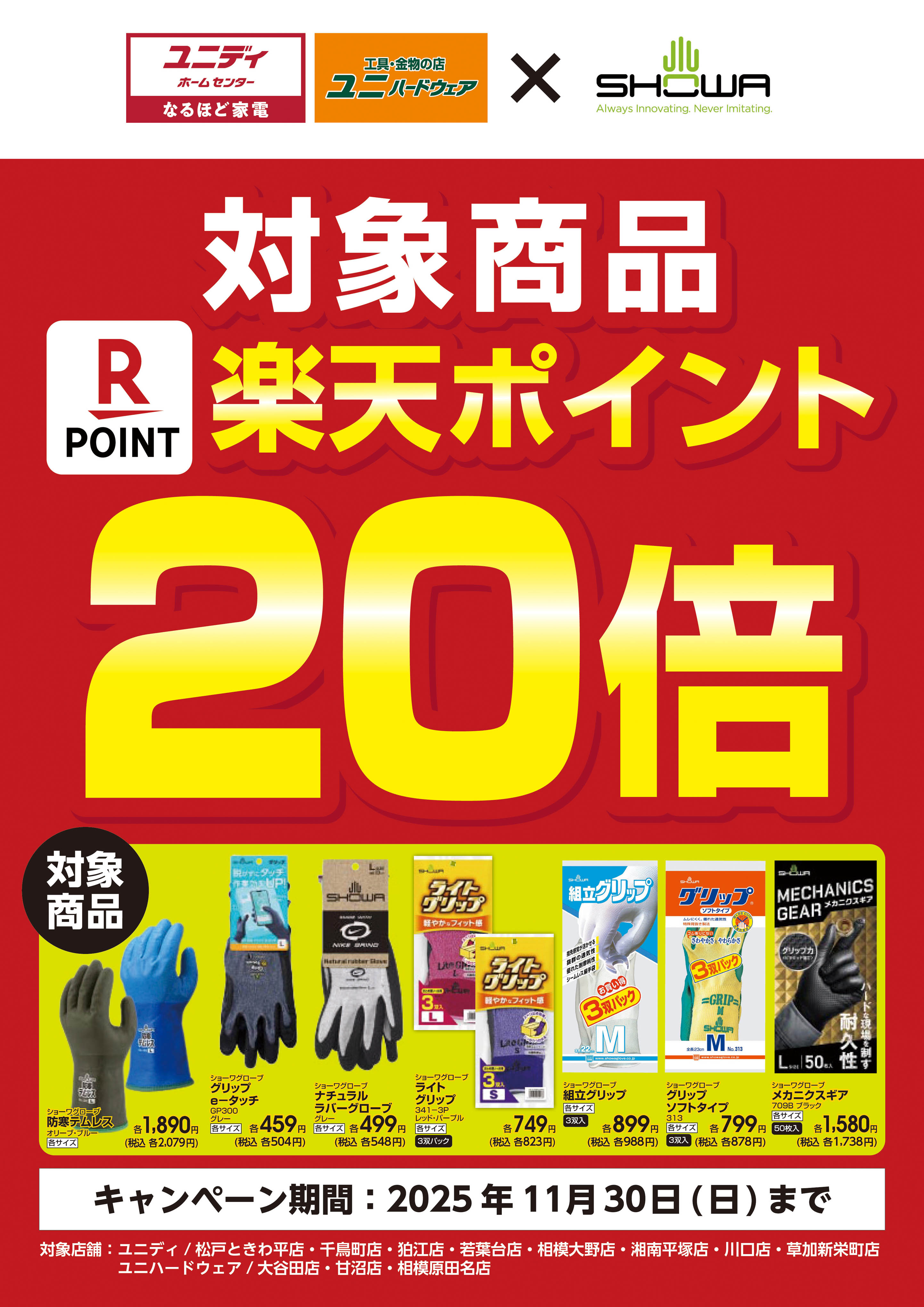11月1日スタート!どえらい市 SMART STYLE ショーワグローブ 対象商品楽天ポイント20倍!