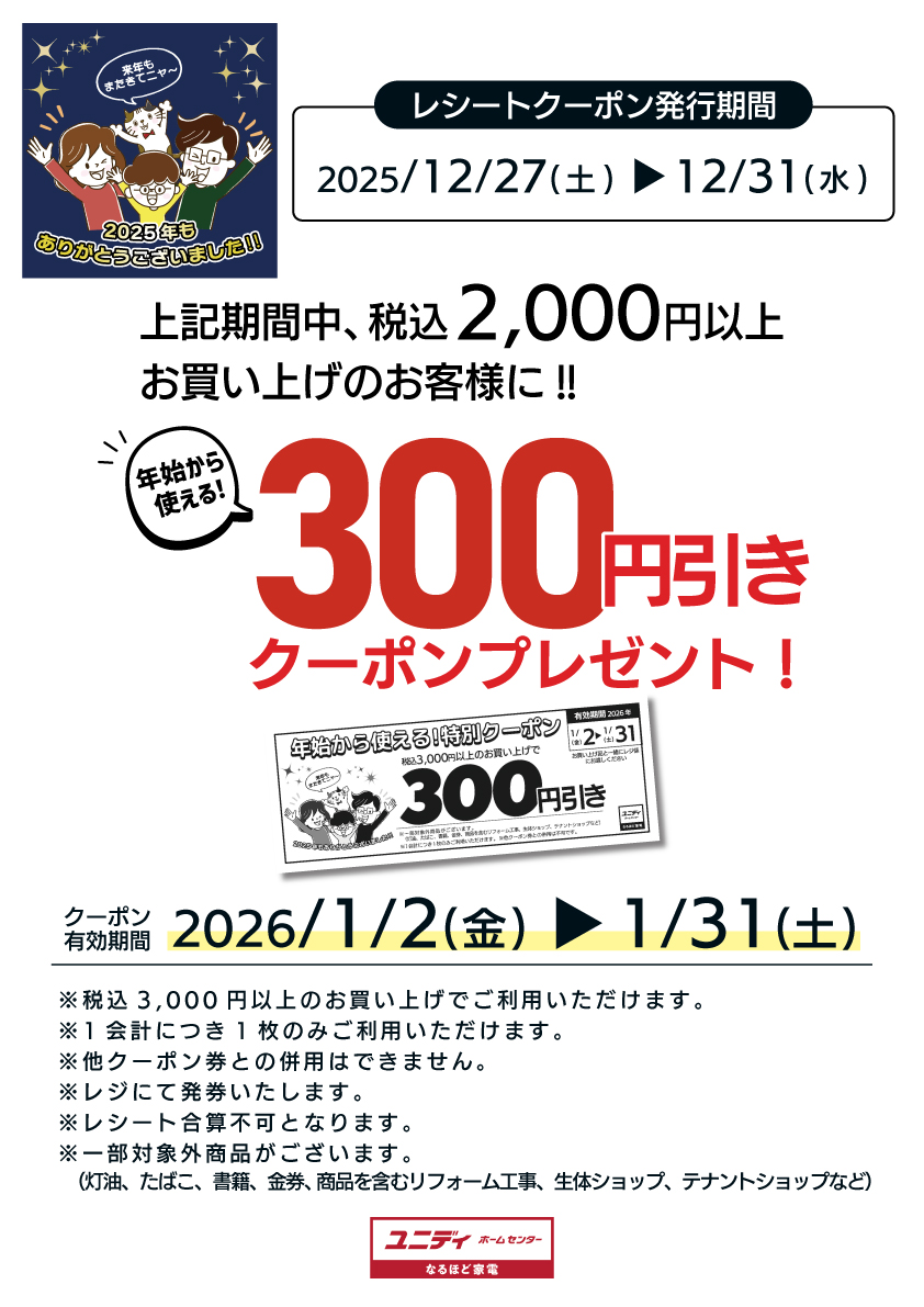 皆様のご愛顧に感謝✨5日間限定!!年始から使える300円引きクーポンプレゼント~!!
