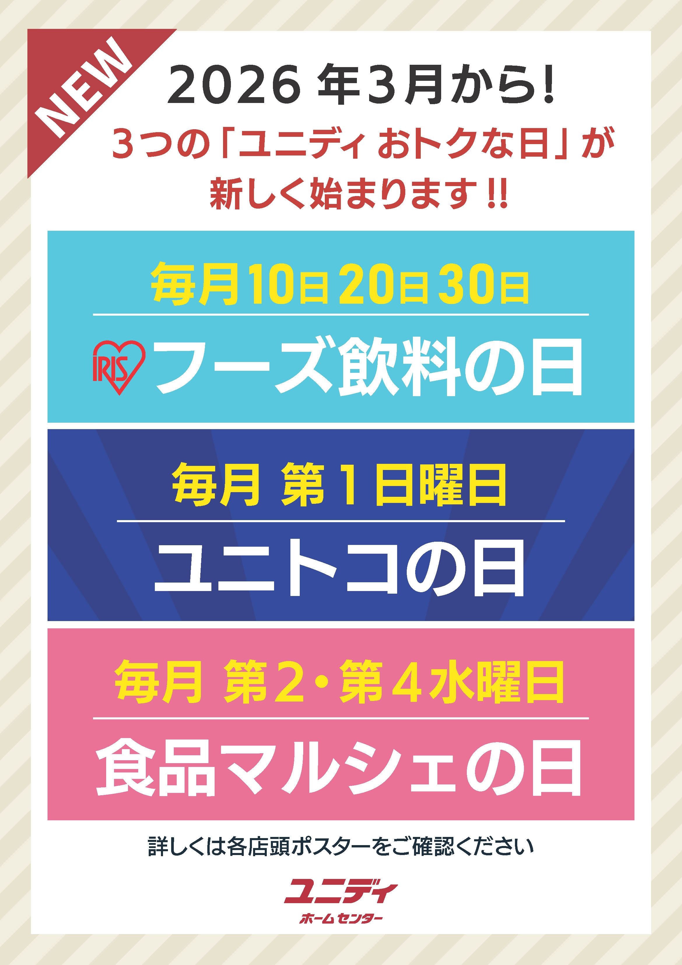 3月から新しく3つの「ユニディおトクな日」が始まります!