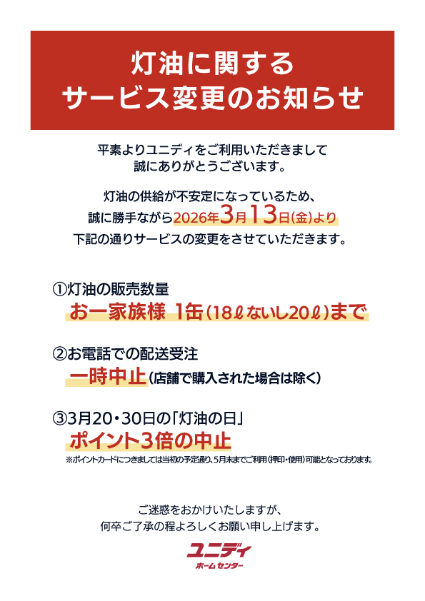 灯油に関するサービス変更のお知らせ