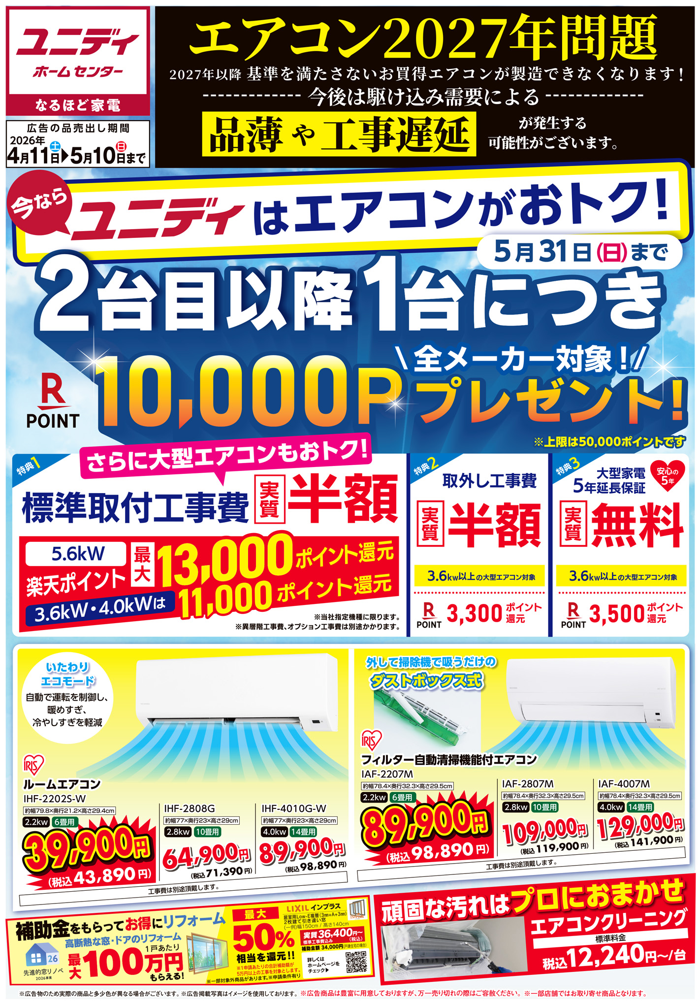 4/11号エアコン2027年問題! ユニディはエアコンがおトク!