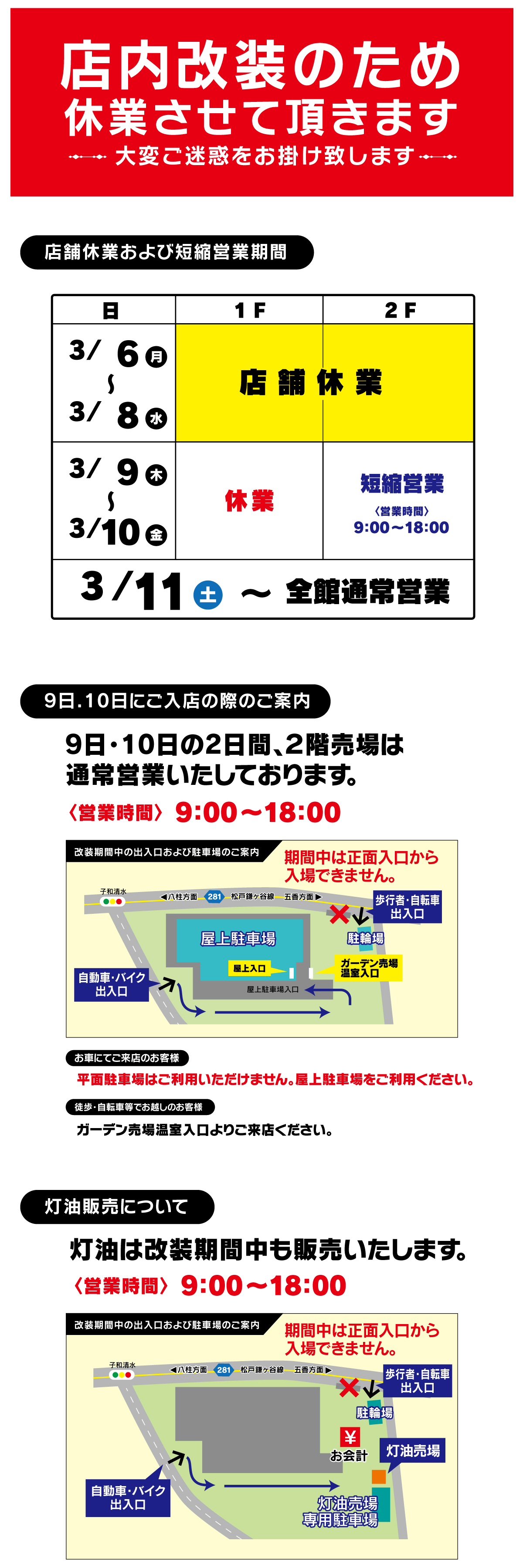 【松戸ときわ平店】1階改装による、お休みのお知らせ
