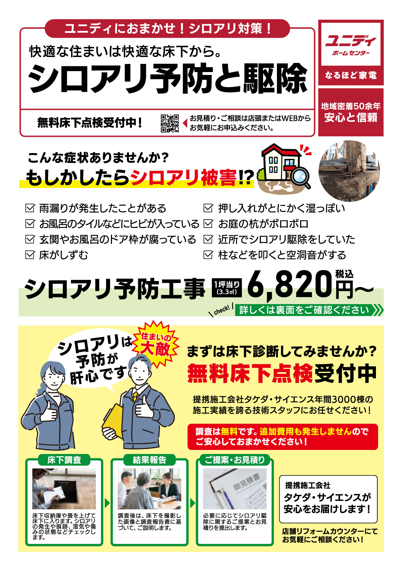 シロアリ無料診断は、調査は無料で追加費用は一切いたしません!